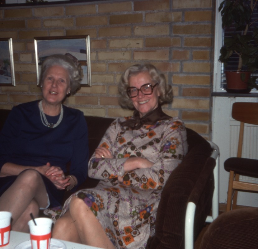 Bilden föreställer två kvinnor, lärare?, sitter i en soffa och har kaffemuggar framför sig på bordet.