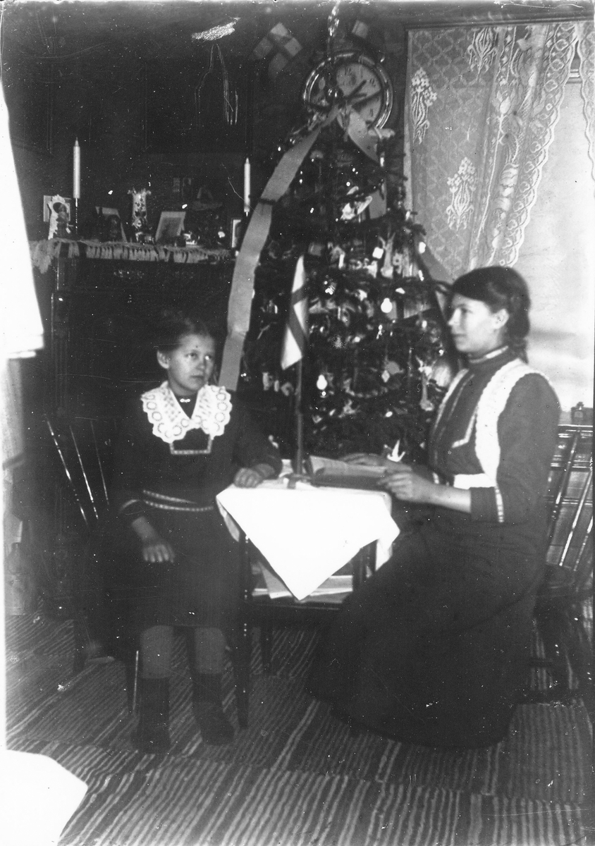 Elvira och Ester Lindberg omkring 1905. Kortet är taget på "Berget" i Östansjö.