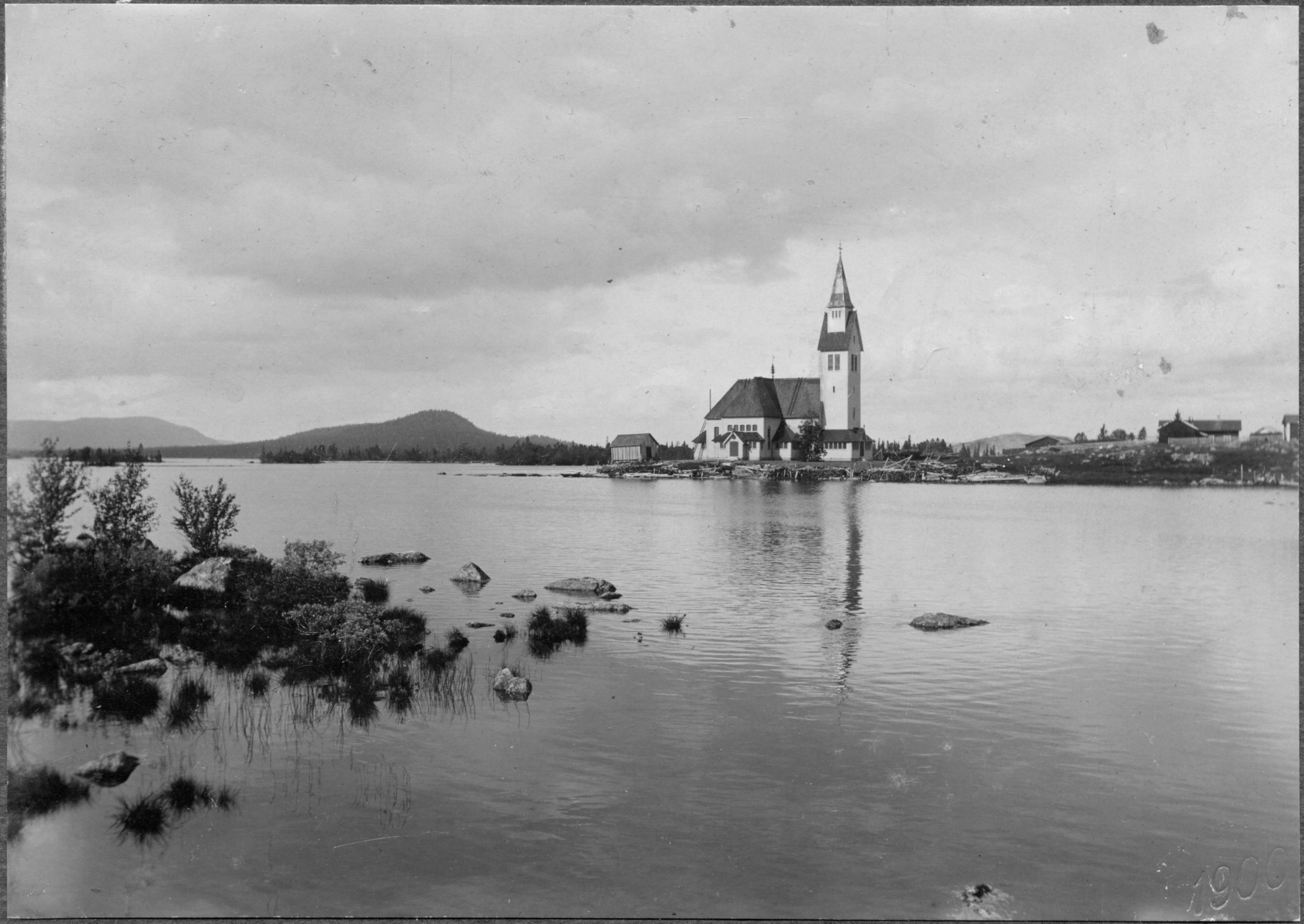 Kyrkan från söder med omgivningar.