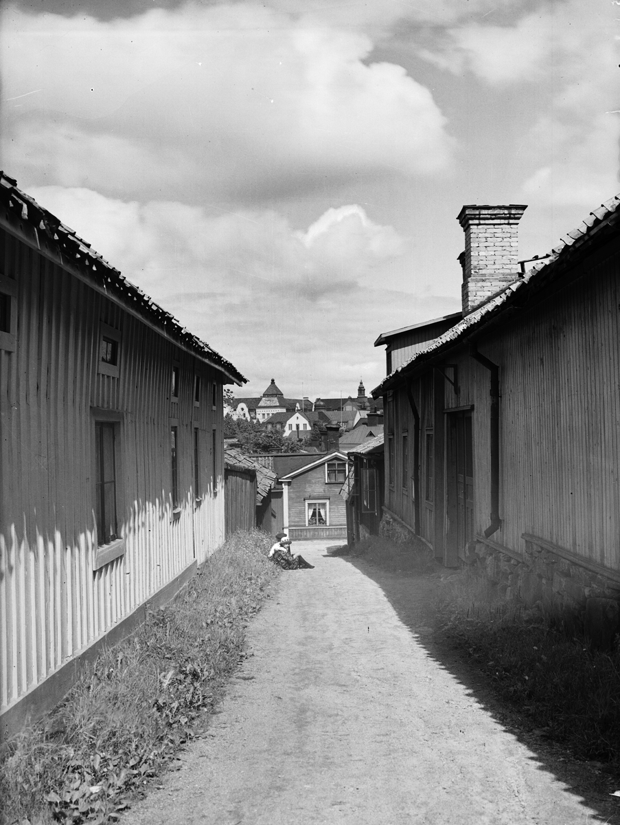 Vagnmakargränd i Gävle, mot norr. Huset nr 3 till höger.