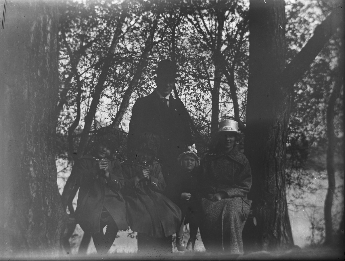 I Boulognerskogen. David Brundin med sina tre döttrar och barnsköterskan Ellen Larsson (en kusin till Elna som bodde i Hemlinggrind).