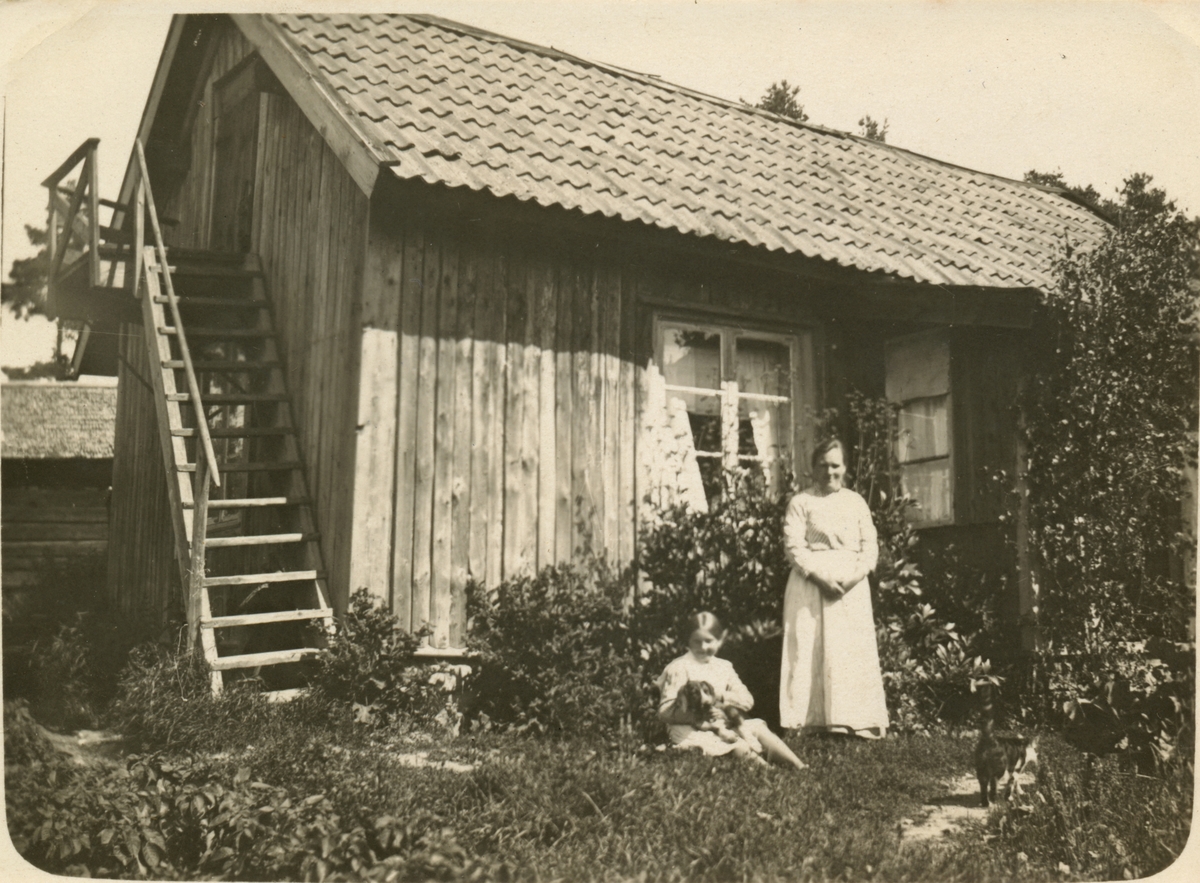 Okänd stuga, okända personer. Samma bild som nr EB 103.