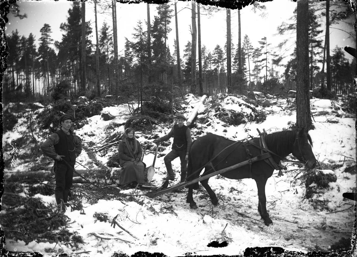 Gottfrid Granlund, Bergkvist med fru och hästen Prima i skogen.