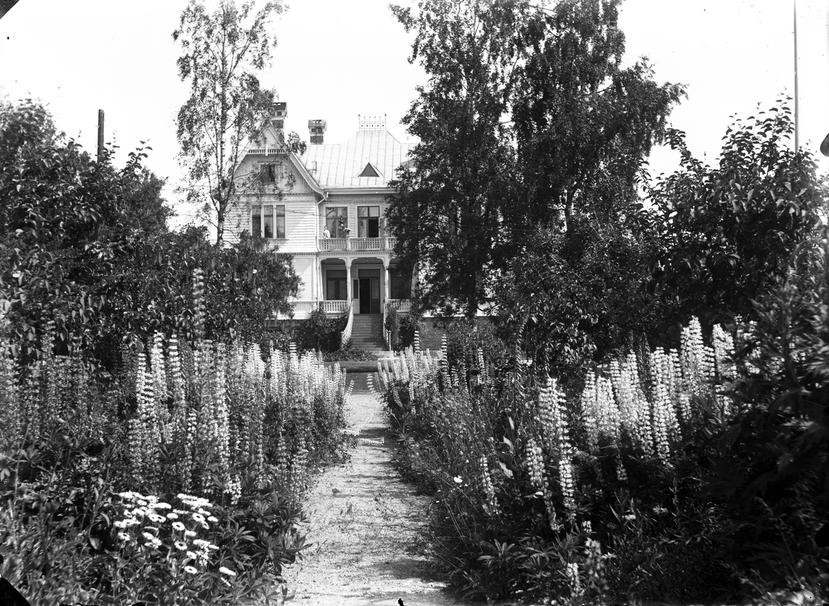 Större herrgårdsliknande villa och trädgård. Direktörsvillan i Norrsundet.