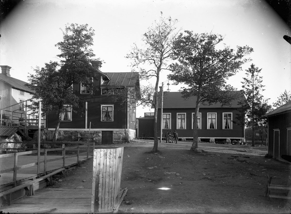 Vy, torget i Norrsundet. Folkets Hus t.h och vaktmästarbostad t.v.