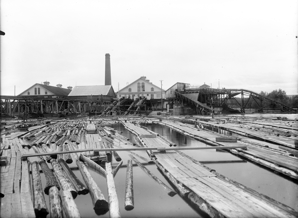 Titel: Sjö med timmer, Kopparfors sågverk.