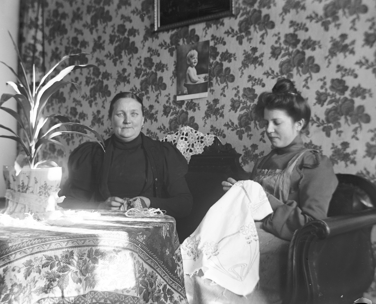 Två kvinnor, Stina Lovisa Norling, handarbetar, i Fors, Torsåker.