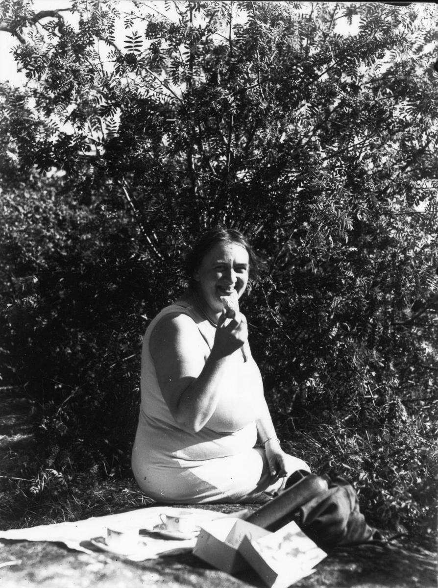 Dam äter bakelse.