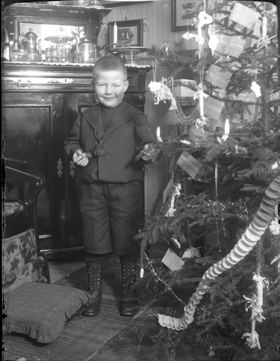 Pojke vid julgran.