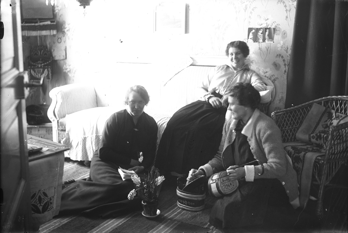 Tre kvinnor i ett vardagsrum.
