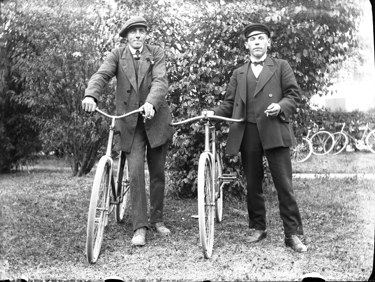 Efraim "Effe" Sjöberg och Helmer Olsson på cyklar, Torsåker.