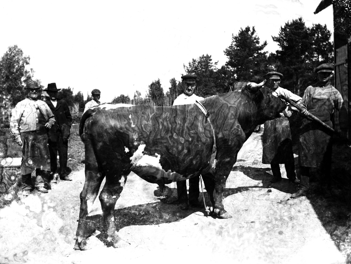 Slakt av föreningstjur vid Nestor Melins slakteri på Wallbyheden.