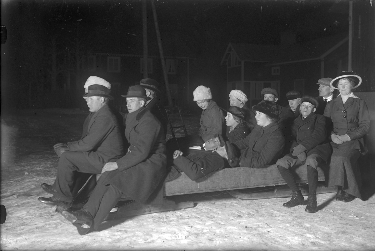 Män och kvinnor på en stor släde.