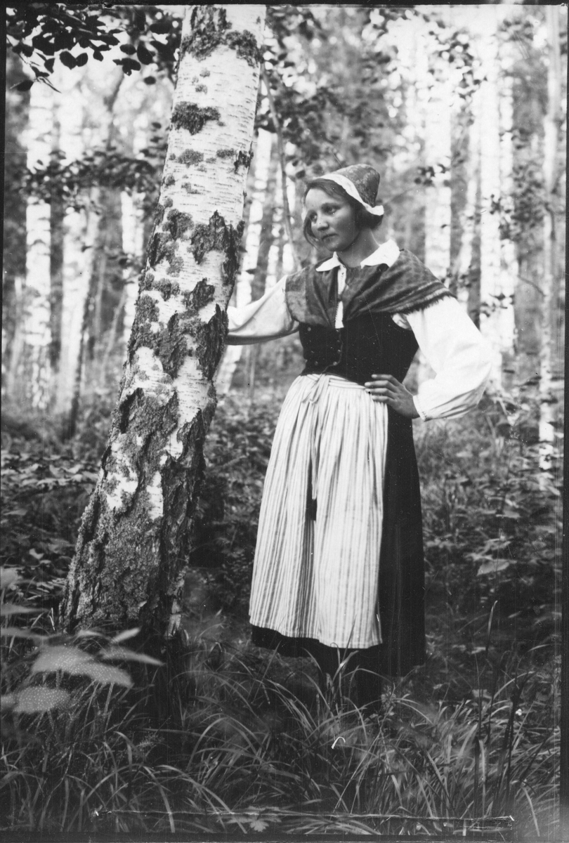 Ung kvinna i folkdräkt.
