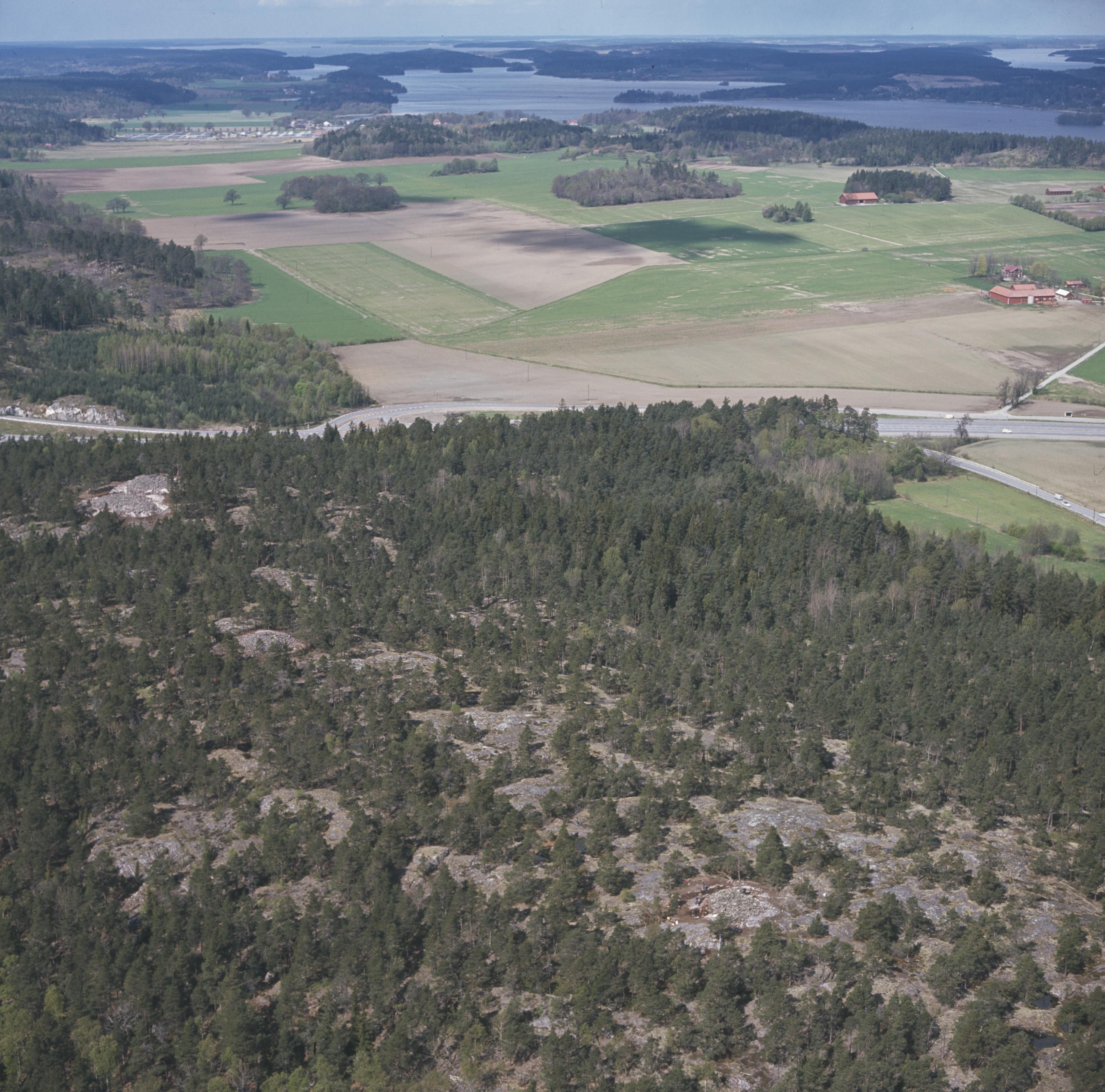 Albyrösena 98-100 från sydost med nuvarande Hallunda och Norsborg i bakgrunden.
