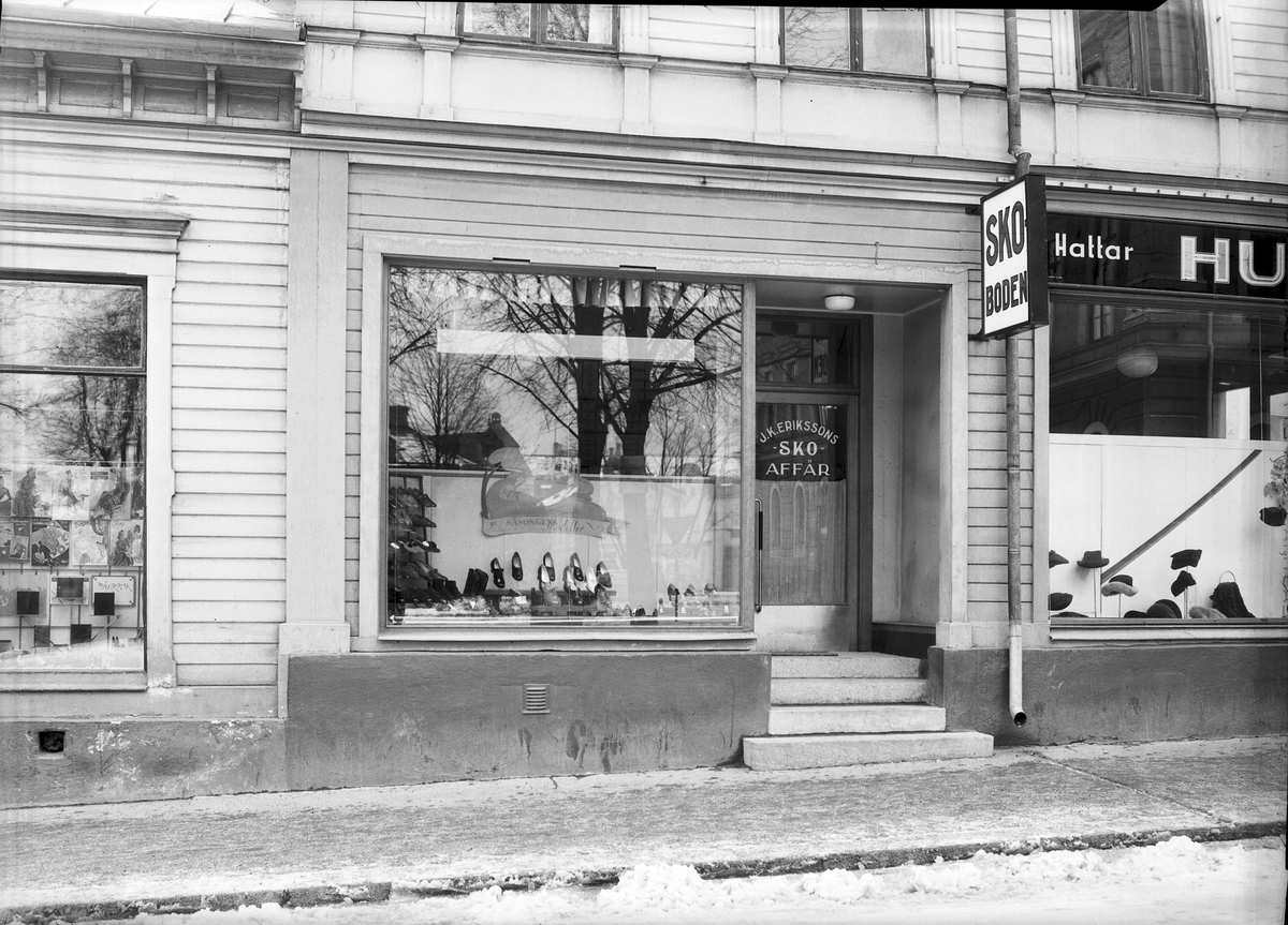 J. K. Erikssons Skoaffär. Hugos Möss och Hattar. "Nutida Norrland"
