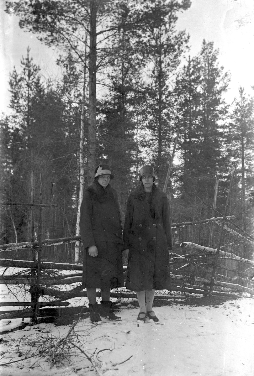 Två kvinnor i skogslandskap.