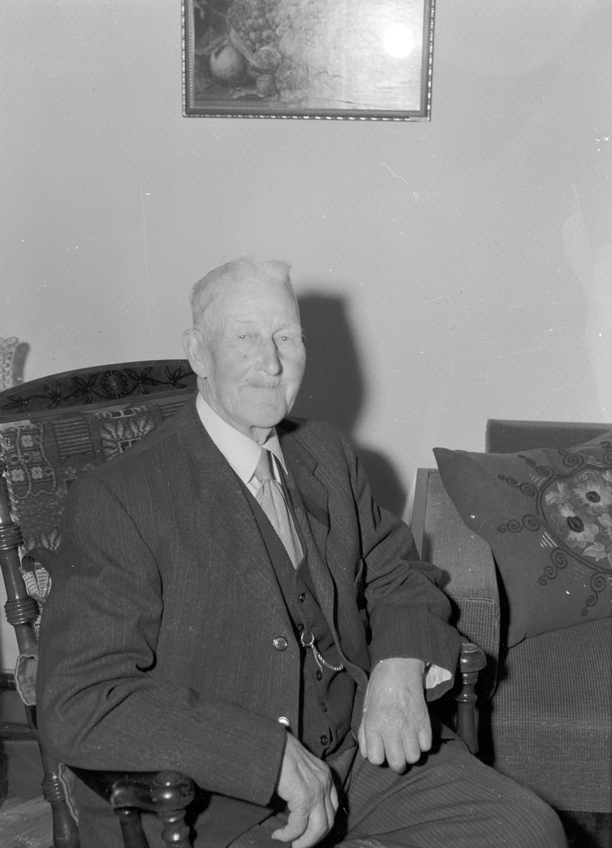K. G. Jansson, Brändströmsgatan, Gävle. 90 års födelsedag firas i hemmet. 9 juli 1951.
