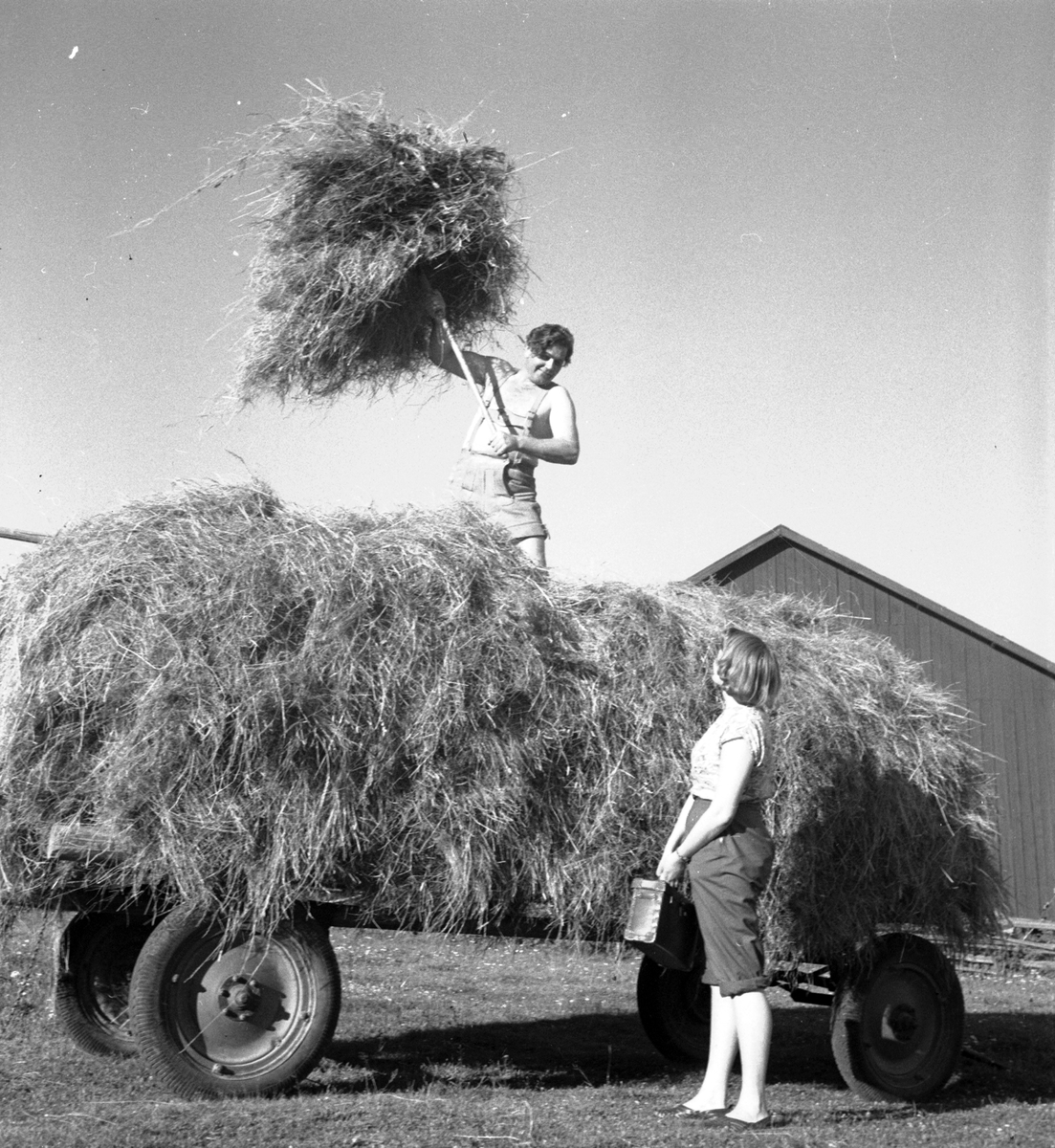 Conny Söderström operasångare, skördearbete hemma i Valbo. Juli 1951.