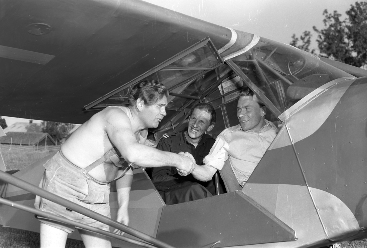 Conny Söderström operasångare, skördearbete hemma i Valbo. Juli 1951.