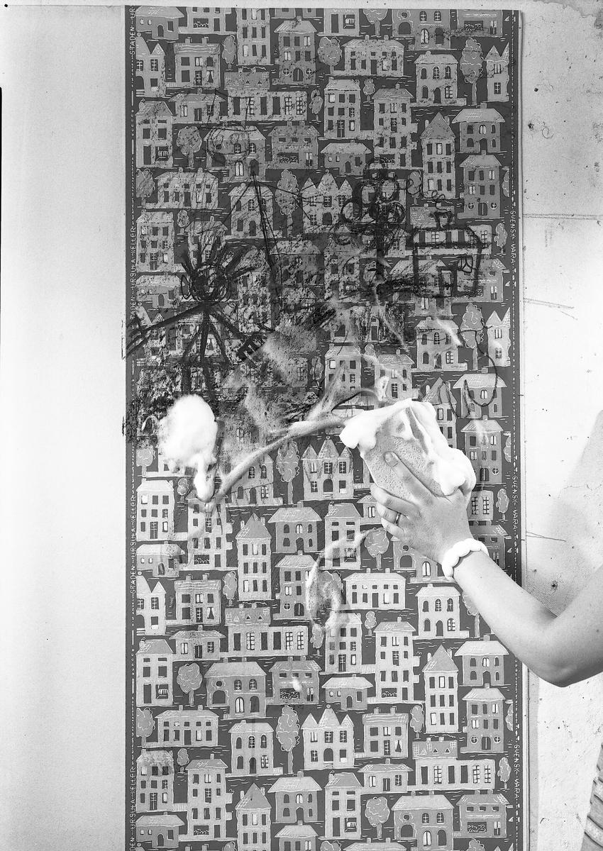 Den 2 augusti 1955. Durotapet. Rengöring av tapet.