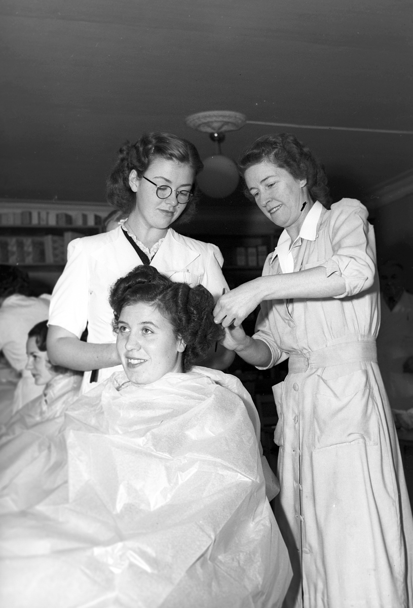 Yrkesutbildning, frisörskolan. 1946. Reportage för Norrlands-Posten