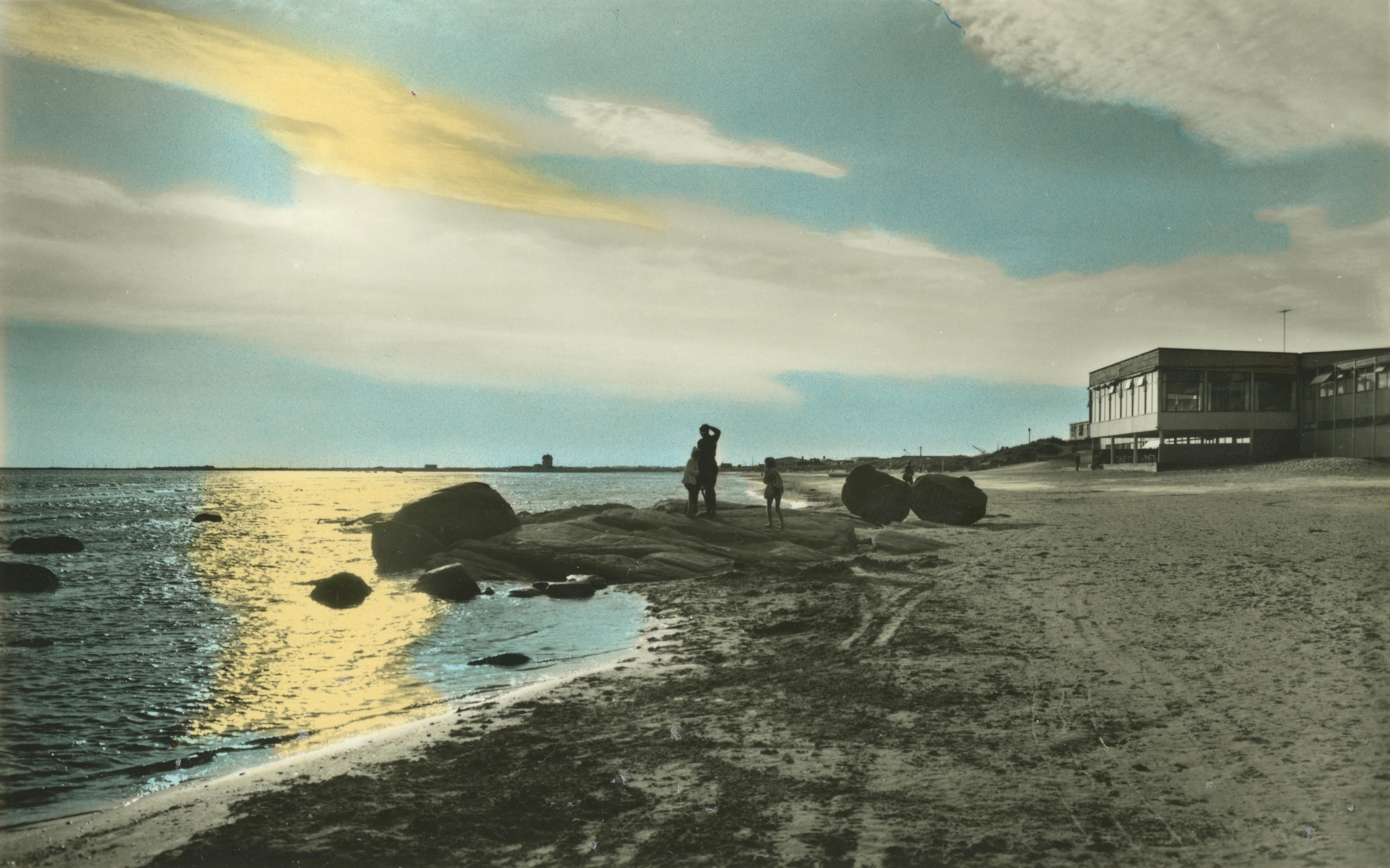 Solglitter vid hotell Strandbaden. Handkolorerad variant av ac00589.