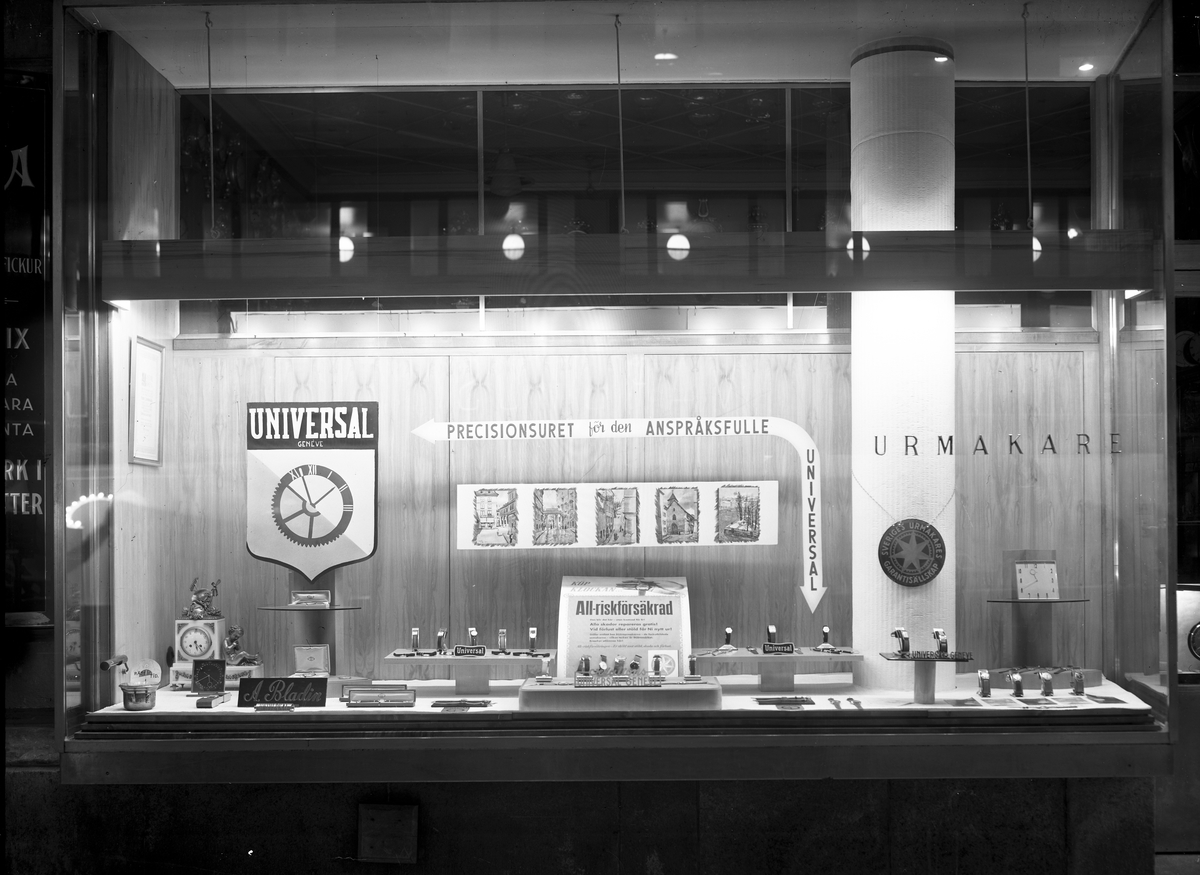 Bladin A. Ur- och Glasögonspecialist, Drottninggatan 18, Gävle. 8 mars 1945.