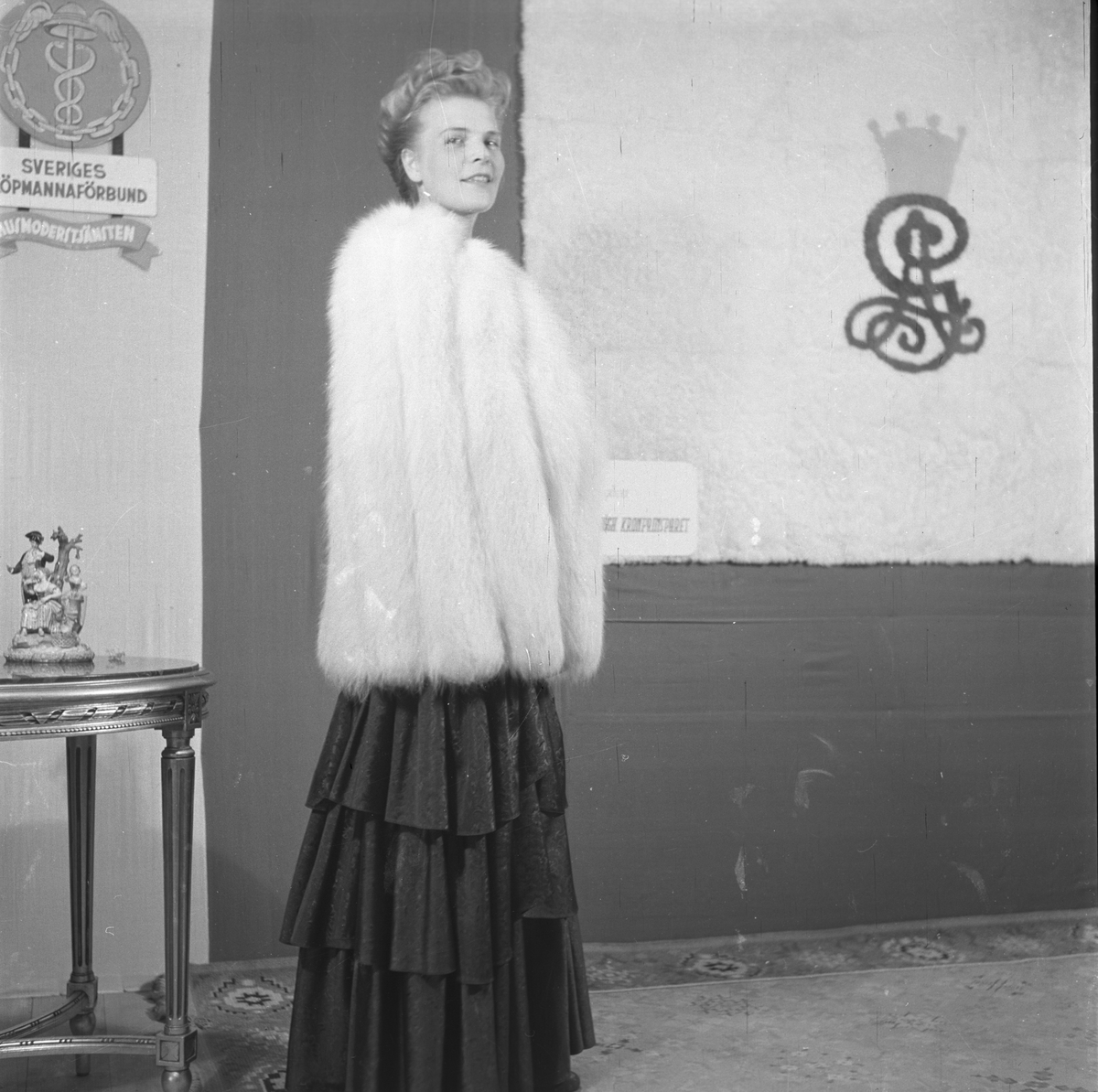 Mannekänguppvisning för Bergströms päls på Gävleutställningen vid Travbanan och Folkparken med anledning av Gävle stads 500-årsjubileum