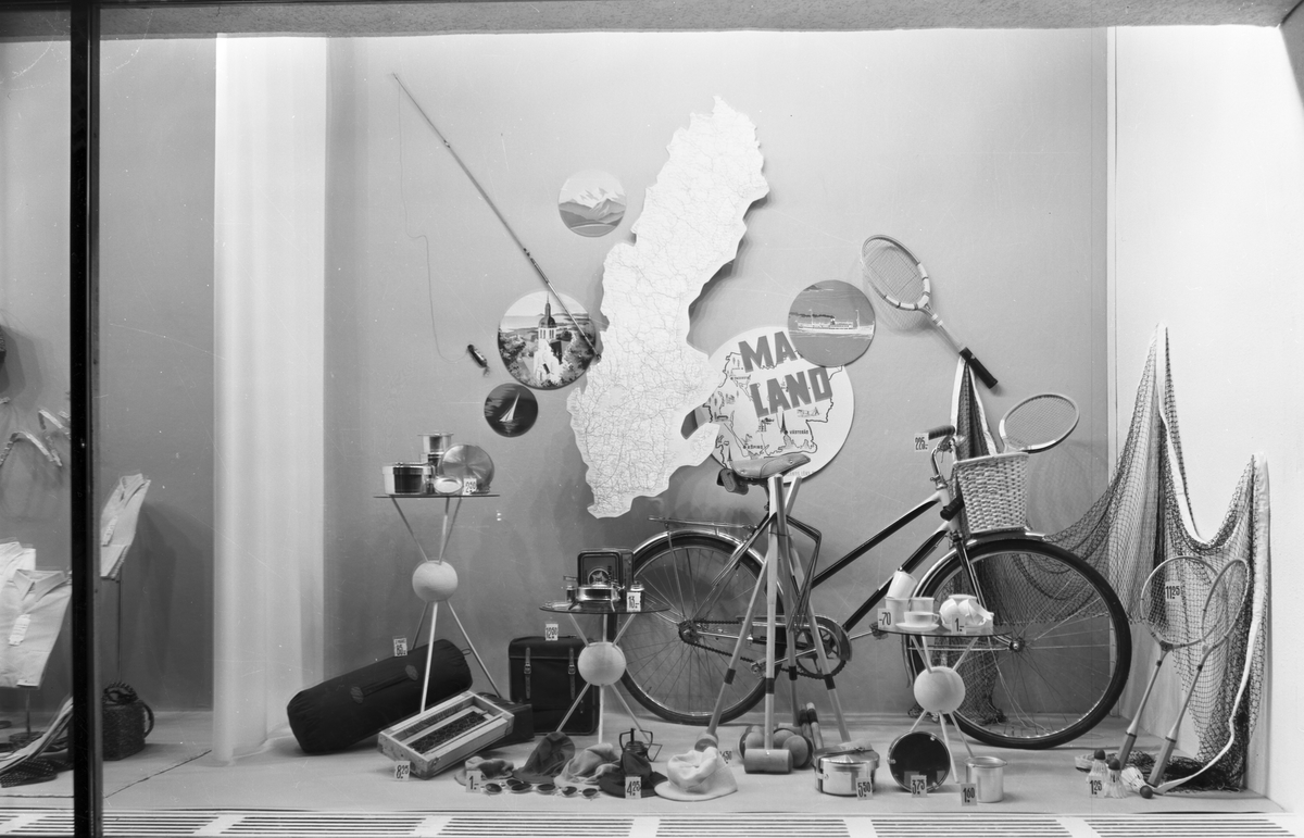 Konsum Alfa Varuhuset. Skyltfönstertema "Sommaraktiviteter"