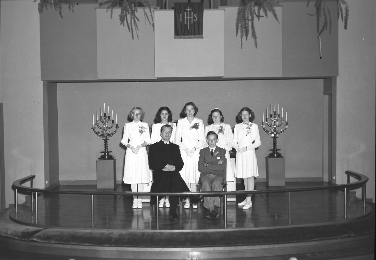 Betlehemskyrkans konfirmander. Juni 1948. Gävle Missionsförsamling beslutade 1972 att riva sin otidsenliga kyrka, ville inte allmänheten förlora den välkända byggnaden. Betlehemskapellet, invigt 1880, ritat av församlingsmedlemmen E.A. Hedin, hade en församlingssal rymmande 2.500 personer, med läktare på tre sidor och på fondläktaren, plats för kör och orgel.