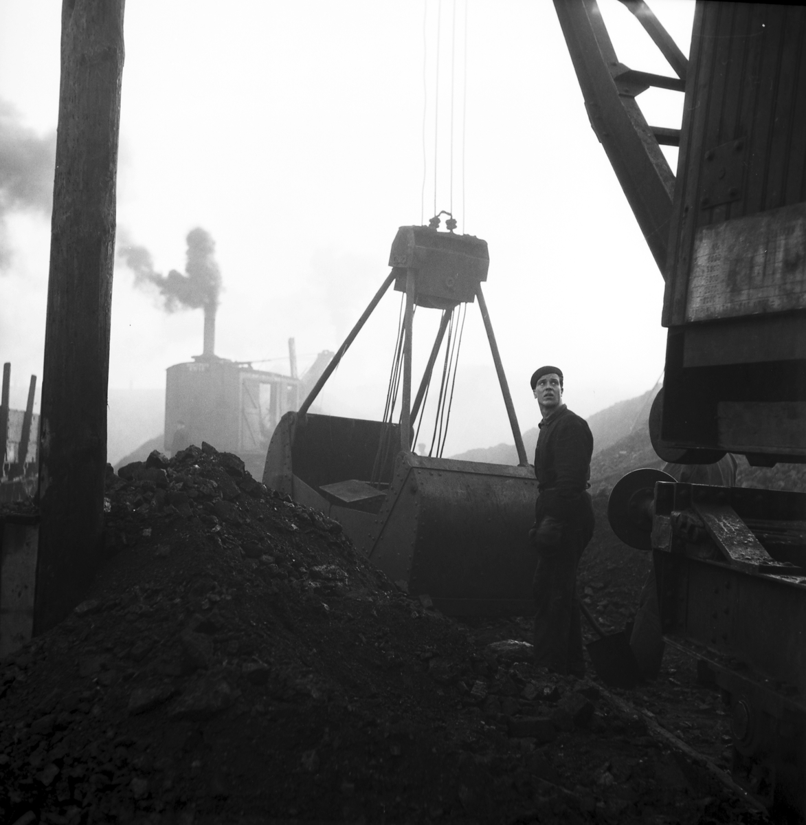 Reportage för Arbetarbladet. Kolmagasinet, eld i kolupplag. Kolhögarna brinner