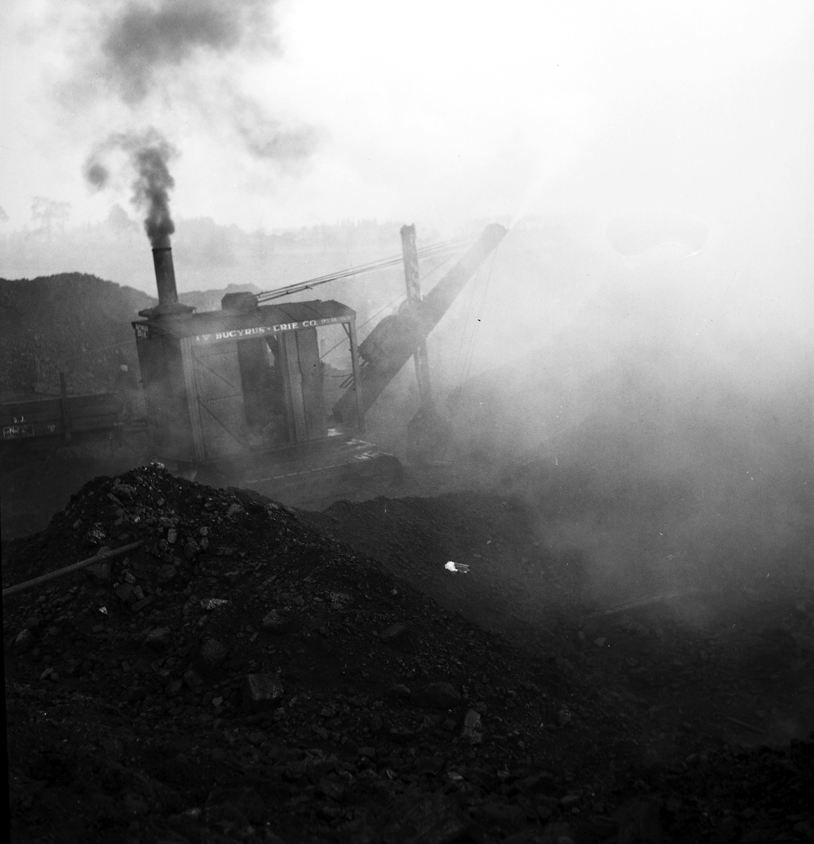 Reportage för Arbetarbladet. Kolmagasinet, eld i kolupplag. Kolhögarna brinner