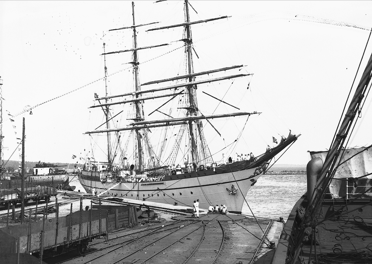 Tyskt skolskepps besök i Gävle. Segelfartyg. Tremastare