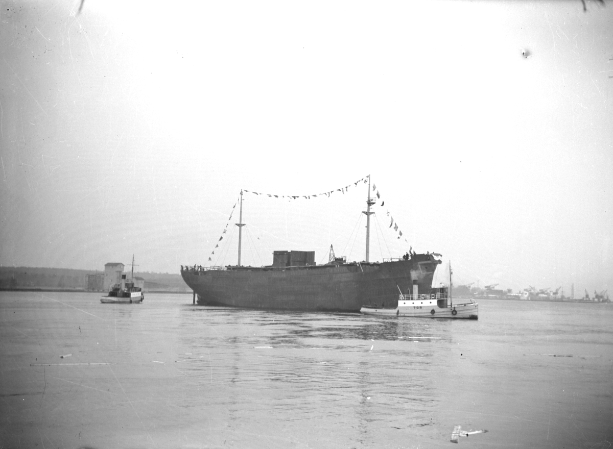 Stapelavlöpning. Den 19 februari 1949. Gävle Varv anlades 1873. Efter en konkurs 1921 bildades Gefle Varfvs och Verkstads Nya AB, som bland annat tillverkade oljecisterner och utrustningar till pappersmassefabriker. På 1940-talet återupptogs skeppsbyggeriet. Norskt fartyg