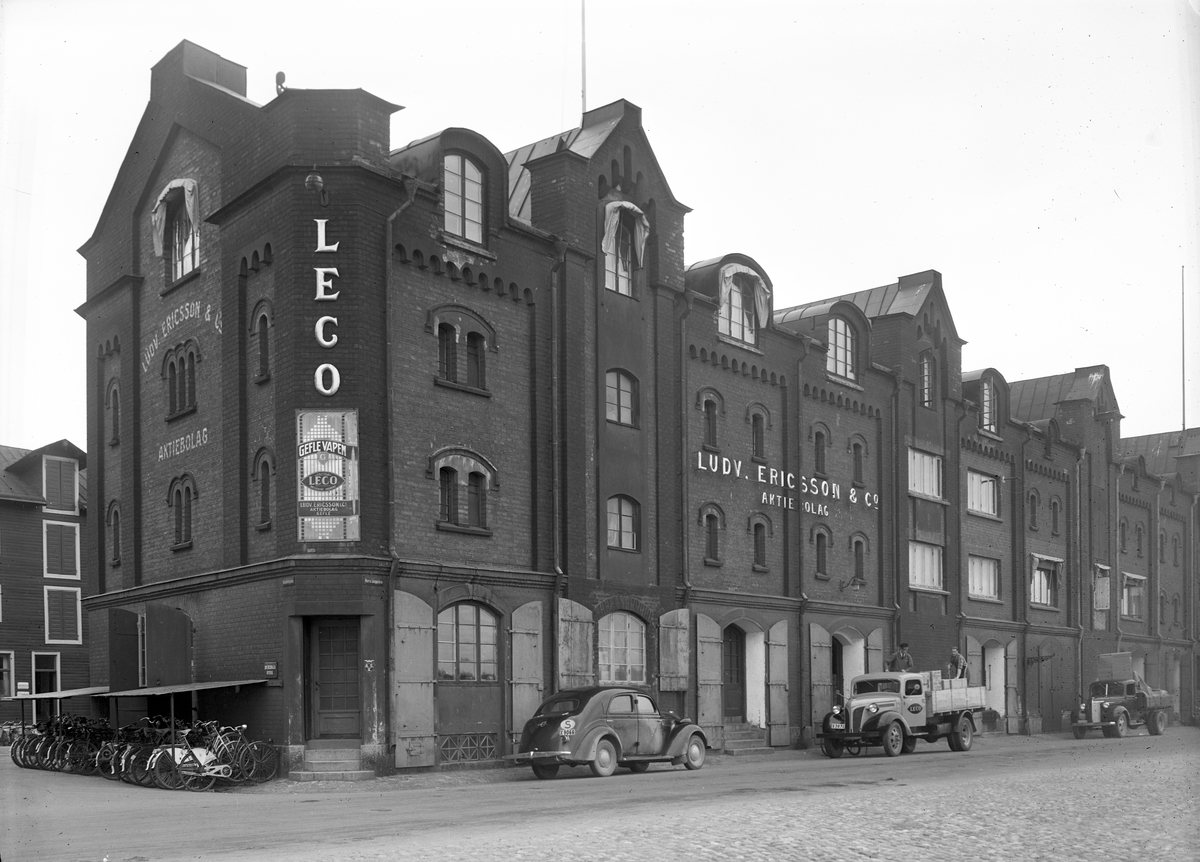 Exteriör av kontor och magasinbyggnad. Juni 1945. Ericsson Ludvig & Co, Norra Skeppsbron 3, Gävle.