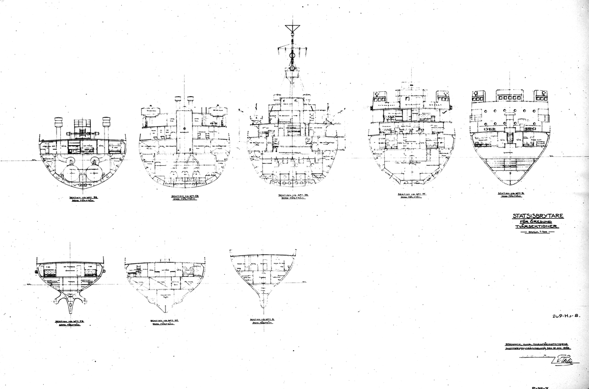 Ritning för stadsisbrytare för Öresund. Juli 1945. Gävle Varv.