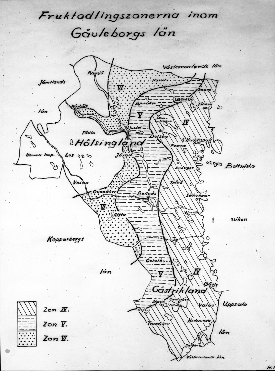 Fruktodlingszoner inom Gävleborgs län. Oktober 1945. Hushållningssällskapet.