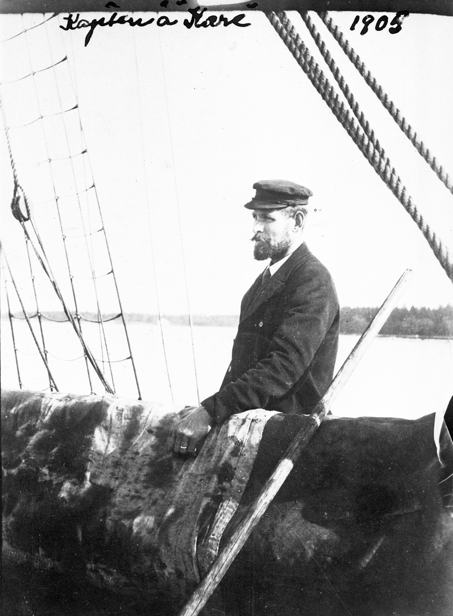 Kopia av äldre kort av skeppare. 12 november 1945. Beställt av hamnlots Söderblom.