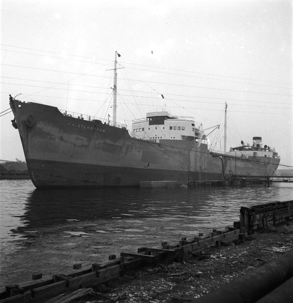 Titel: Fartyget "Falsterbohus" i Gävle hamn. År 1949.