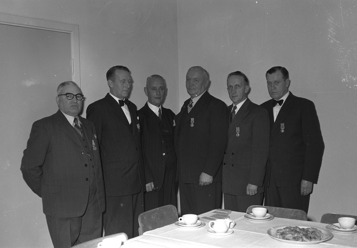 Titel: Postkontor medaljutdelning i lunchrummet. 15 november 1949.