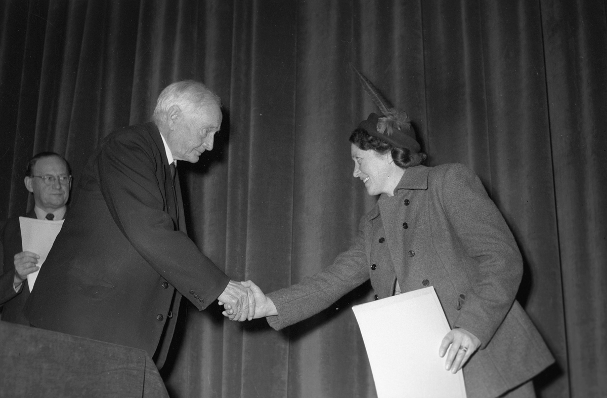 Mjölkpropaganda, utdelning av diplom på stadshuset. 16 november 1949.