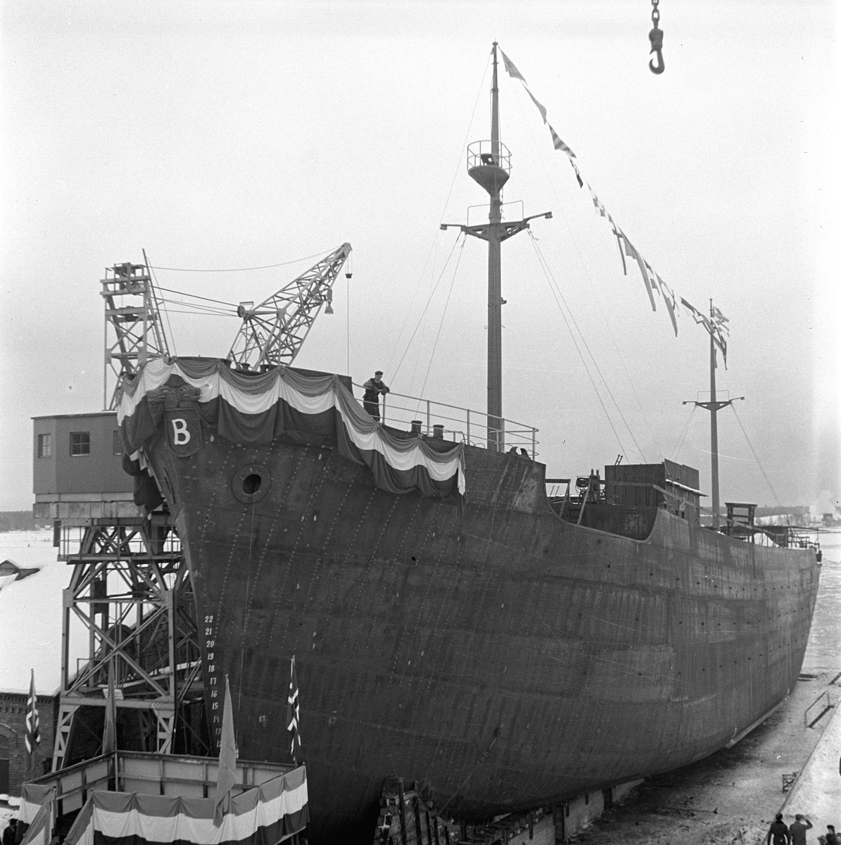 Gävle Varv från "Gezina Brövings" stapelavlöpning. 14 januari 1950.