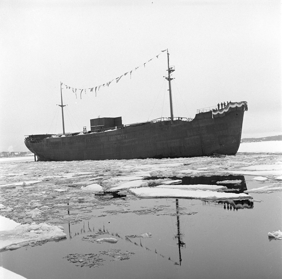 Gävle Varv från "Gezina Brövings" stapelavlöpning. 14 januari 1950.
