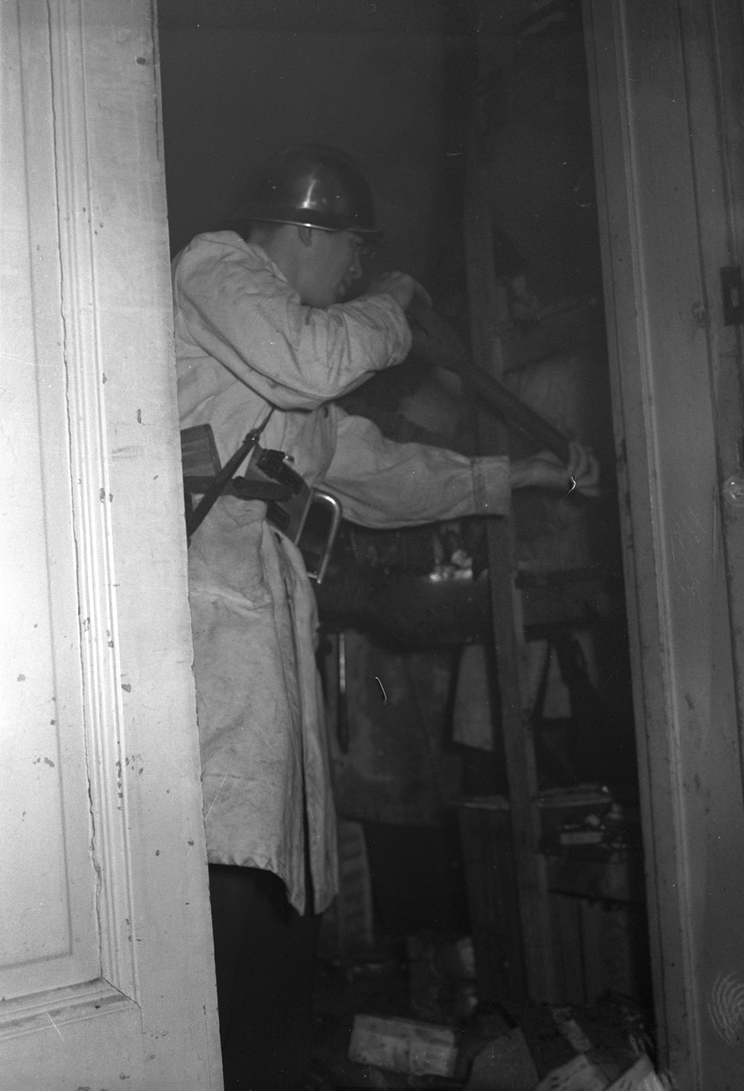 Nordströms Fruktaffär. Eldsvåda i lagret. 7 februari 1950.