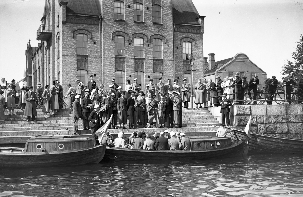 Sjömanskyrkan vid Gavleån. Studenter på båtutflykt