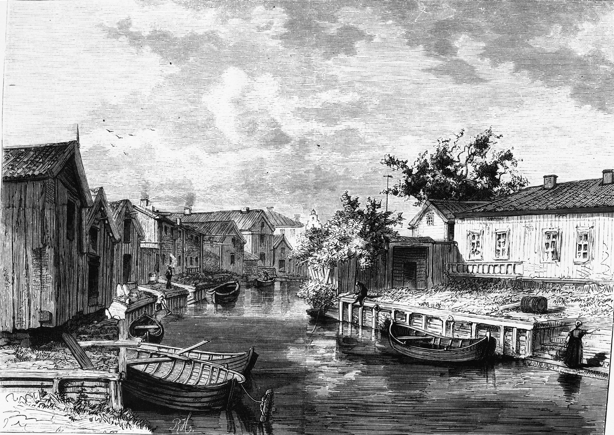 "Det Gefle som går" Parti vid Islands-Lillån, tecknat af Haglund