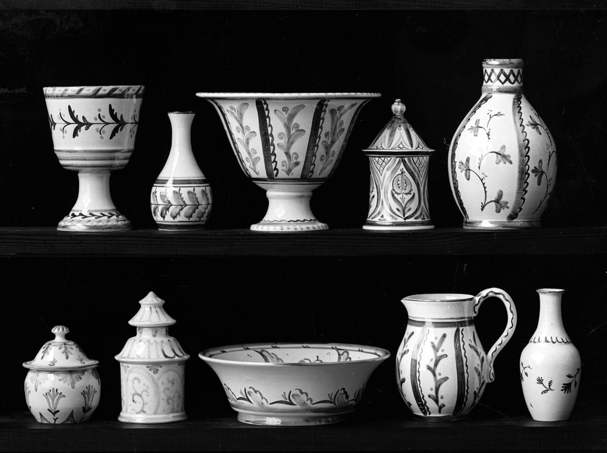 Husgeråd och prydnadsföremål. Bobergs Fajansfabrik AB.