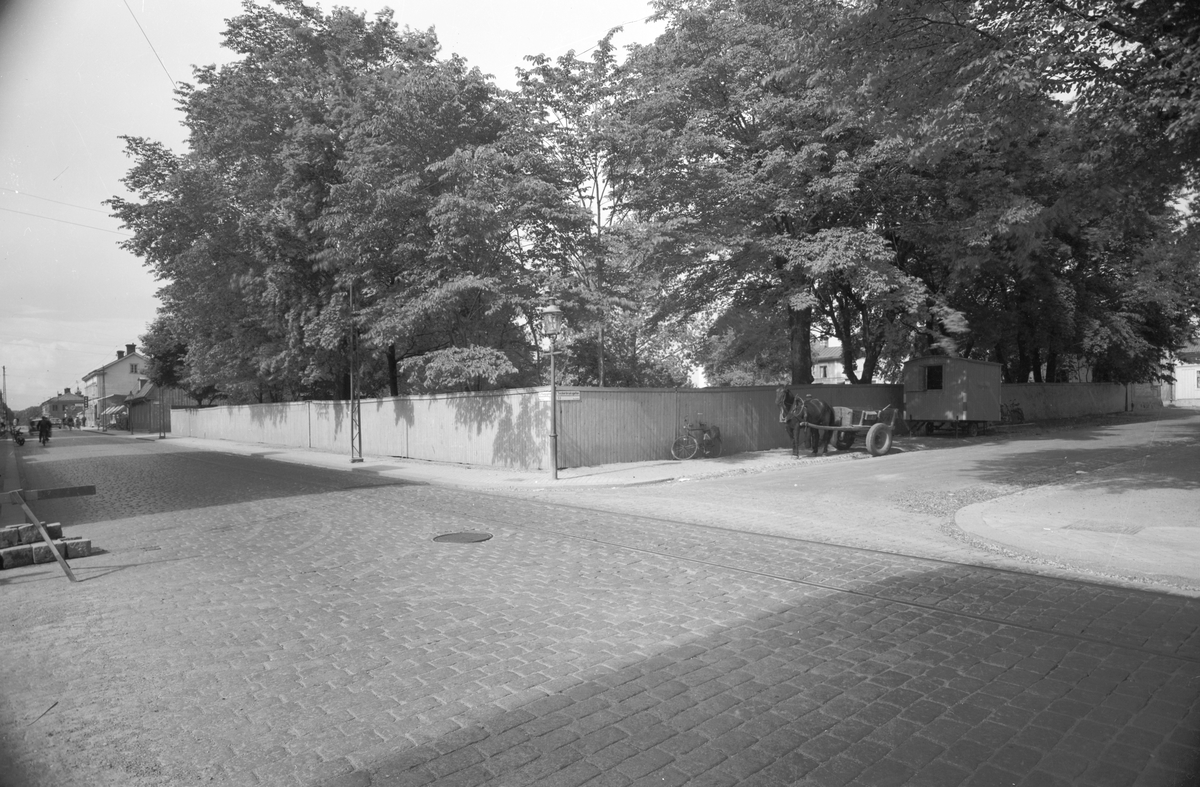 Södra Kungsgatan och Sockerbruksgatan. Häst och kärra