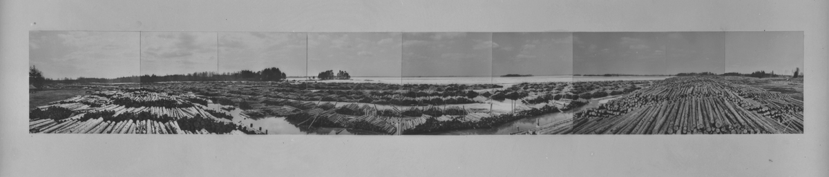Panoramabild över timmerupplaget vid sågen i Kastet